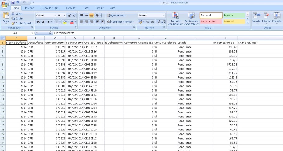 Por ejemplo, desde la zona de las facturas de ventas, hay que exportar las facturas a Excel. Se debería descargar un archivo como este:
