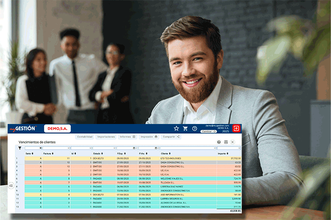La gestión de la facturación no es efectiva si no llevas un seguimiento diario y exhaustivo de los cobros y pagos de los recibos. Controla las facturas y recibos impagados, establece riesgos o personaliza diferentes formas de pago.